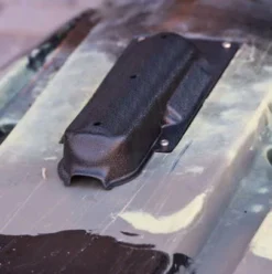 The kayak keel guard is made from thermoformed ABS plastic. We recommend installing it with marine goop or another adhesive that will not degrade the kayak material over time. These can also be attached with 3m VHT tape but we recommend putting an adhesive around the edges to ensure the part can’t have sand or debris find its way down. The part is formed with large sides to give the part a good area for bonding and holding onto your kayak.